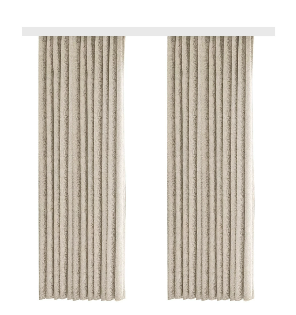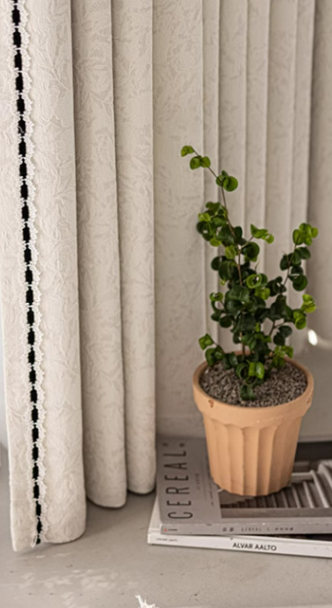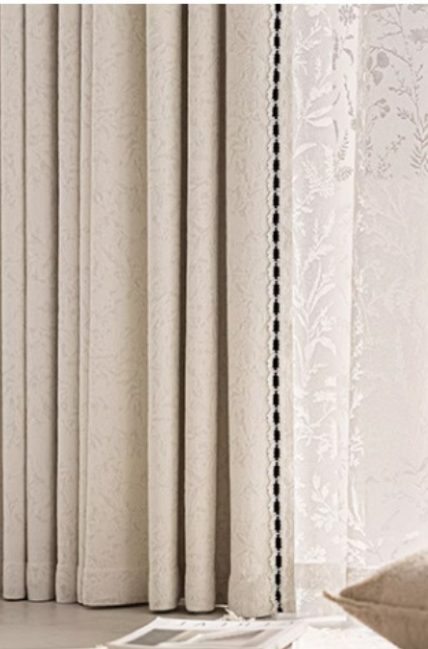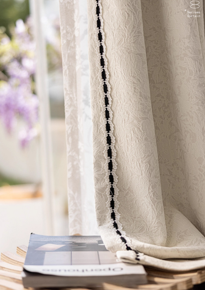 Rideau occultant blanc crème jacquard floral bordure noire