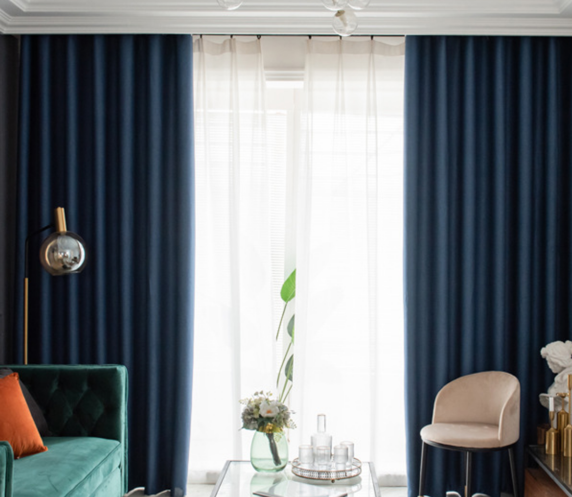 Rideau occultant bleu nuit lin double face premium salon