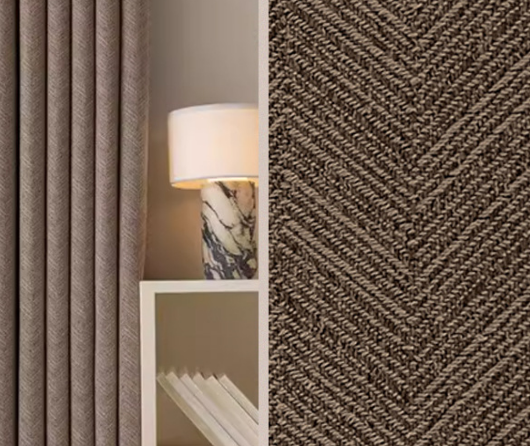 Rideau occultant gris taupe chenille chevrons herringbone salon
