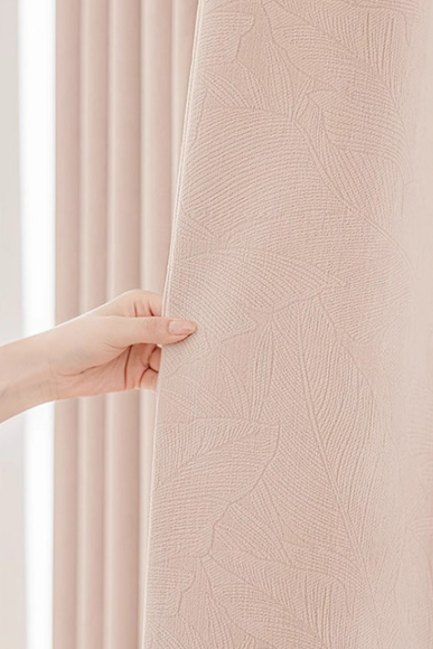 Rideau occultant rose pale jacquard feuilles chambre